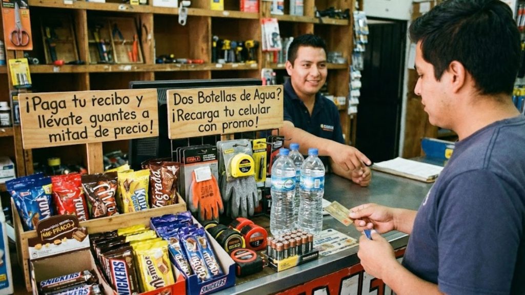 • Carteles en puerta: “Aquí pagas tu luz, agua, internet, recargas y más”.